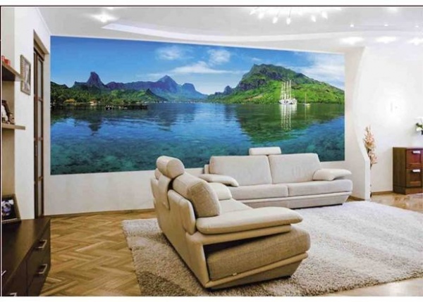 При этом предметы обстановки в комнате с такими фотообоями нужно расставить так, чтобы они не закрывали изображение.