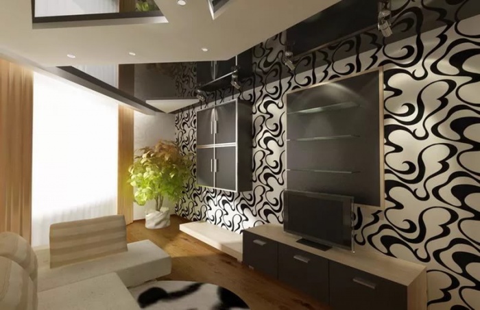 При декорировании зала обоями нужно учитывать следующие условия: