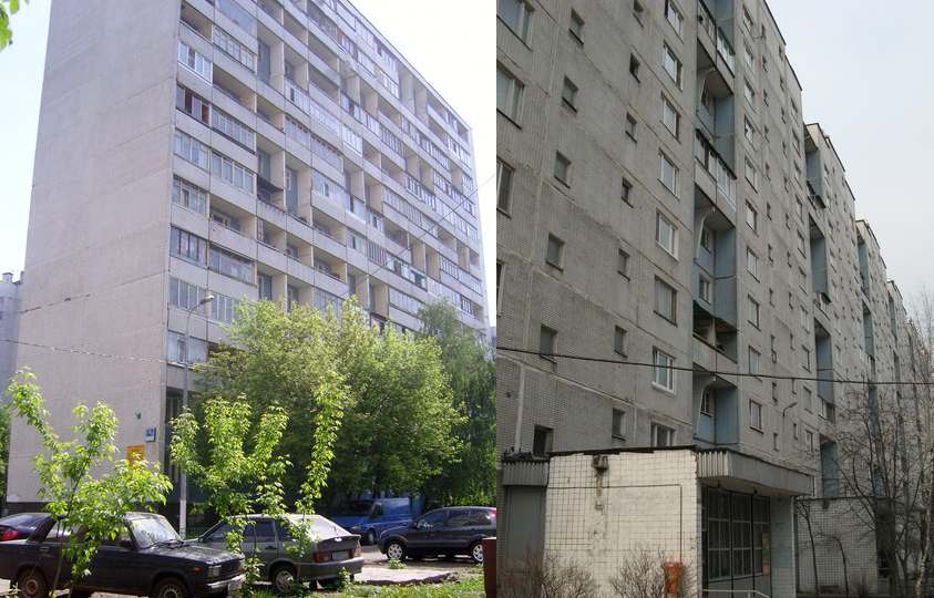 Изменился и вид самих зданий. Как уже говорилось выше, они подросли с 5 этажей до 9 и даже до 16 – это позволило с минимальными затратами заселить большое количество людей.