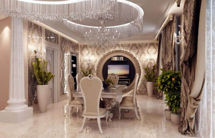 Если квадратные метры позволяют обустроить зал, тогда легко можно реализовать свои задумки, ведь будет где разгуляться фантазии. Тут уже не так остро стоит вопрос о функциональности каждого элемента.