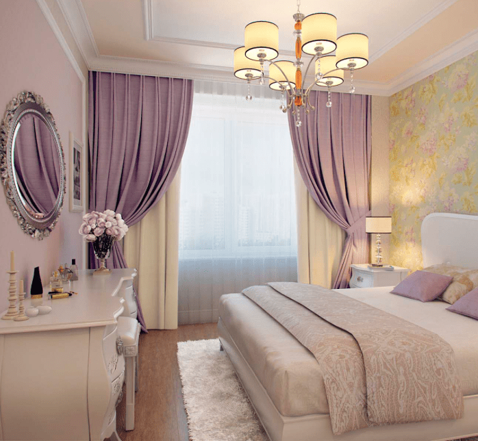 Шторы, как и все остальное, надо подбирать именно под выбранный дизайн спальни. Также именно в спальную комнату лучше взять шторы из плотных тканей, чтобы создать подходящую обстановку для сна.