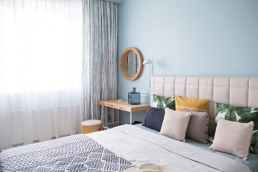 Также стоит обратить внимание, куда выходят окна в комнате. Для спальни, где окна выходят на север или запад лучше исключить желто-зеленые, бордовые и серые тона. Если они выходят на восток – голубые, розовые и коричневые. Причина в том, что в лучах восходящего и заходящего солнца эти цвета будут создавать угнетающую атмосферу.